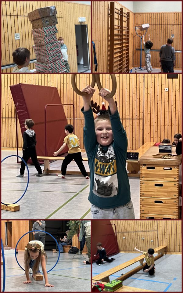 Anschließend waren alle Gäste zum vielfältigen Weihnachtsbuffet mit Diashow eingeladen. Darüber hinaus konnten auch Weihnachtskarten gebastelt werden oder zahlreiche weihnachtliche Stationen in der Turnhalle erprobt werden.