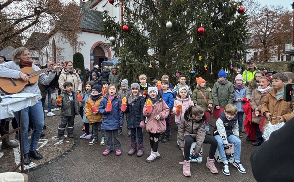 Am 30.11.2025 beteiligte sich die Grundschule an den Rheinwiesen mit dem Lied „Kinder tragen Licht in Dunkle“ an dem Gaulsheimer Adventsmarkt.