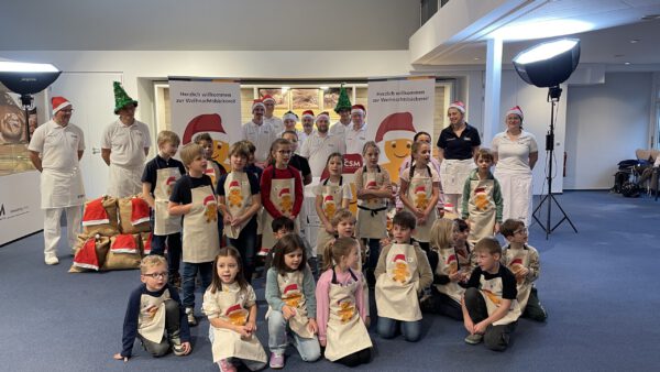In diesem Jahr hatte unsere Schule das große Glück für die Teilnahme an der „Himmelsbäckerei“ ausgesucht worden zu sein. Am 28.11.2025 fuhren wir mit allen Kindern der Schule zur Fa. CSM Ingredients und wurden dort bereits vom Bürgermeister, Vertretern der Stadtverwaltung und der Presse sowie einem großen Team der CSM Mitarbeiter/-innen empfangen. Zunächst wurden die Kinder ausführlich begrüßt und es wurden als Geschenk Musikinstrumente und ein Scheck von 5000 € überreicht. Mit diesem Geld soll auf unserem Schulhof ein Sonnensegel für ein „grünes“ Klassenzimmer finanziert werden.