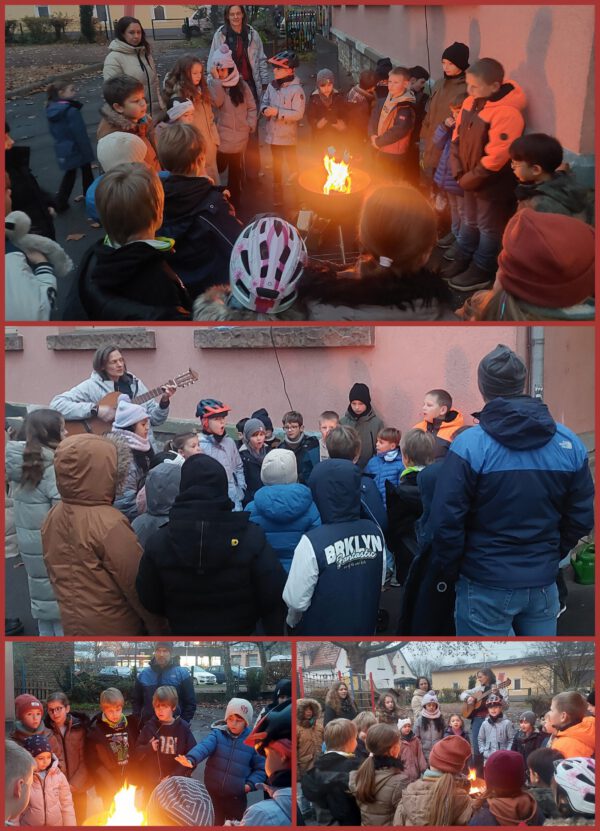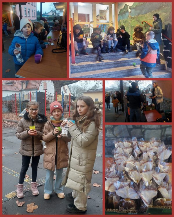 Am 05.012.2025, dem Morgen des Nikolausabends, startete der Tag der Schülerinnen und Schüler in der Grundschule an den Rheinwiesen auf dem Schulhof mit Lagerfeuer, Kinderpunsch und gemeinsam gesungenen Nikolausliedern.